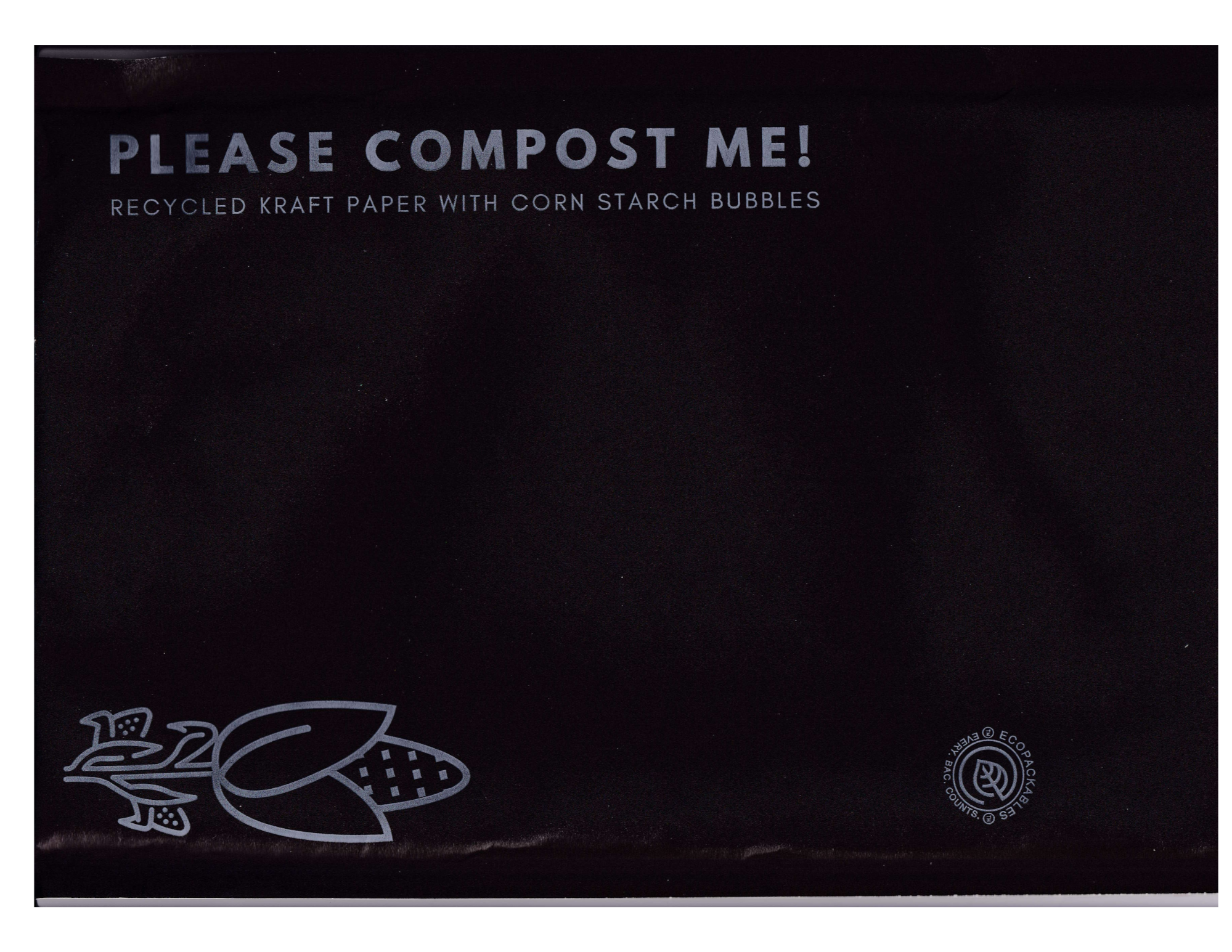 EcoEnclose Padded Mailers: Macerated newsprint sandwiched between kraft paper; 100% recycled, 25% post-consumer waste kraft paper fiber